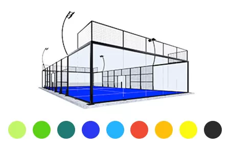 This is the padel court without canopy ordered by the customer, the foot post is thickened and the color of the post is changed to fresh and lively green, the perfect combination of purple and green makes the overall atmosphere look more energetic.